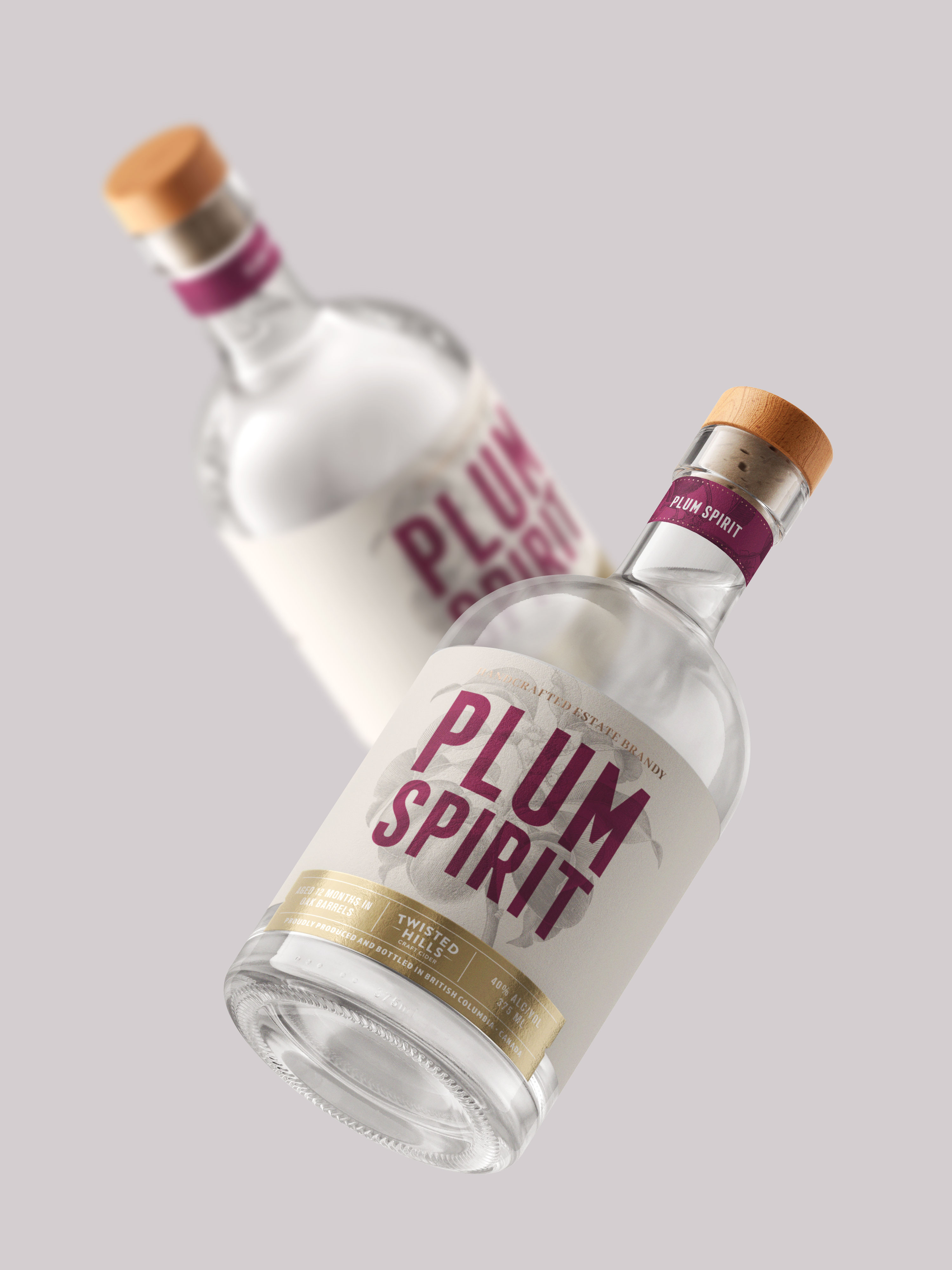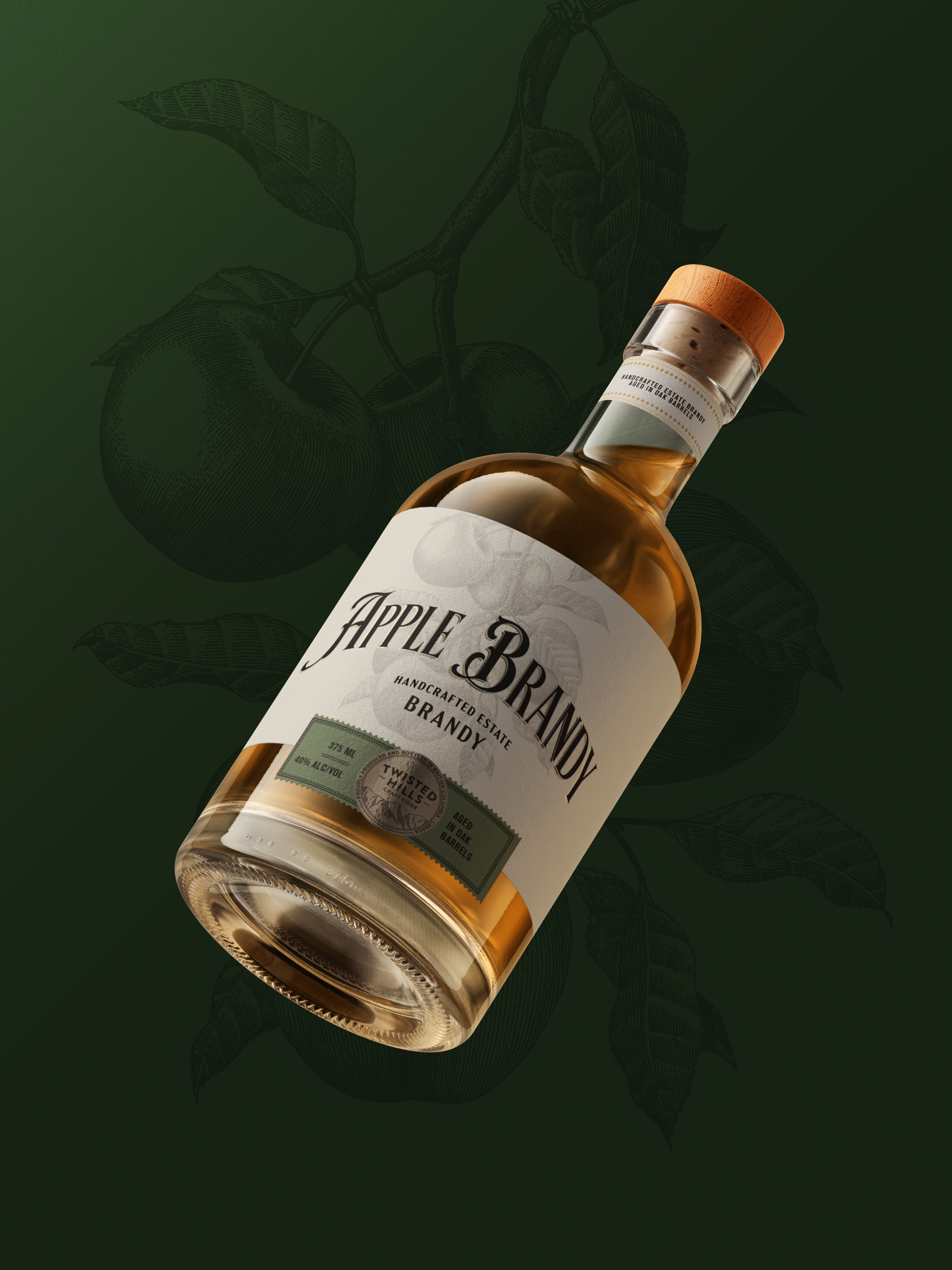 Unlike their ciders, Twisted Hills’ spirits are on the unique and unusual side; the products are not well known within Canada or the US. Exploring label printing techniques to get the consumer interested enough to pick up the bottle was important. We also used designs that add a sense of old-worldliness and history into the labels so the consumer could better understand what the spirits are all about, and why they will love them.
